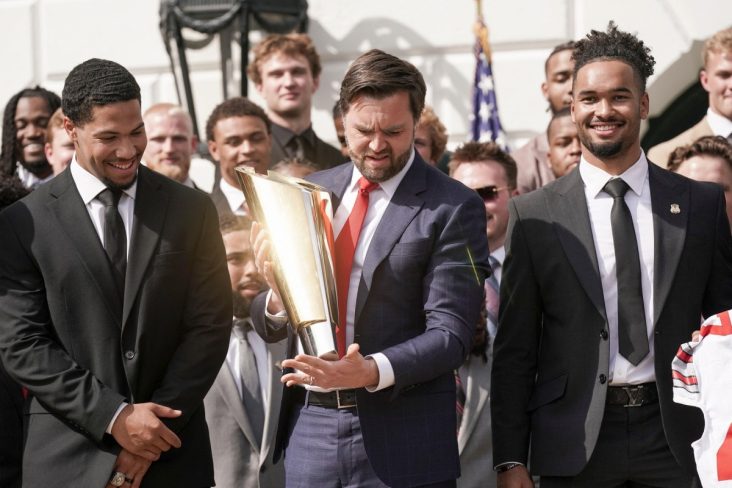 La încheierea ceremoniei de pe peluza de sud a Casei Albe, Vance a început să ridice trofeul acordat statului Ohio pentru câştigarea meciului de campionat naţional din 2024 din cadrul College Football Playoff din ianuarie, însă – în timp ce fanfara Casei Albe cânta piesa „We are the Champions” a trupei Queen – nu a fost momentul triumfal pe care Vance îl spera.