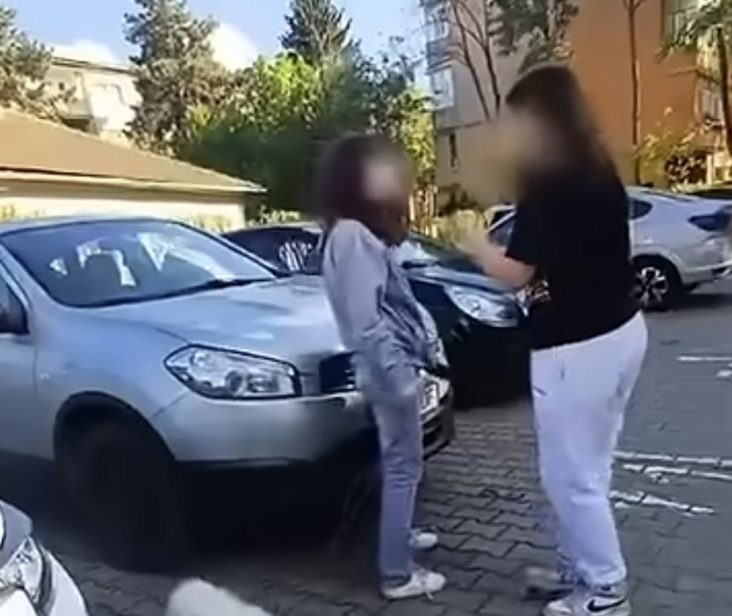 În imagini se vede cum o tânără loveşte cu sălbăticie o fată, care pare minoră şi care are în lesă un câine.