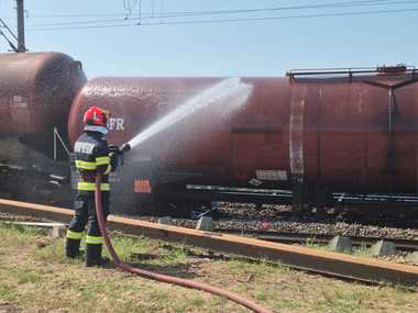 Pompierii intervin în continuare în judeţul Teleorman, unde locomotiva şi două vagoane ale unui tren plin cu benzină au deraiat. Cele două vagoane sunt răcite constant, având în vedere că în zonă este cod galben de caniculă. Celelalte 33 de vagoane au fost îndepărtate din zonă.