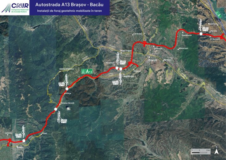 Compania Națională de Investiții Rutiere (CNIR) anunță că, în această săptămână, au început lucrările de foraj geotehnic și în zona montană a Autostrăzii A13 Braşov–Bacău, pe tronsonul cuprins între km 92 și km 124.