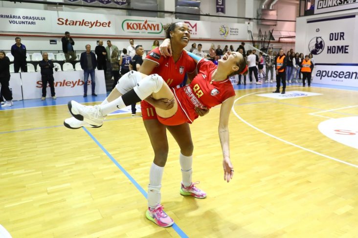 Cea mai bună jucătoare a Blajului în acest an are pe jumătate sânge românesc! Amelie Rotar a venit la Volei Alba în ianuarie, de la Roma și este fiica fostului mare jucător român Tudor Rotar și a unei foste internaționale franceze. Ea a reușit 30 de puncte în meciul câștigat luni seară cu 3-1 (17-25, 25-15, 25-22, 25-18) și deja aștepta petrecerea cu fetele.
