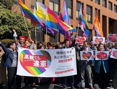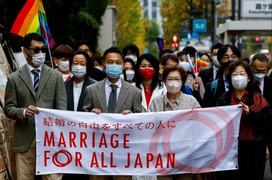 Constituţia japoneză din 1947 prevede că o căsătorie necesită ”consimţământul reciproc al ambelor sexe”, dar şi că toate persoanele ”sunt egale în faţa legii”.