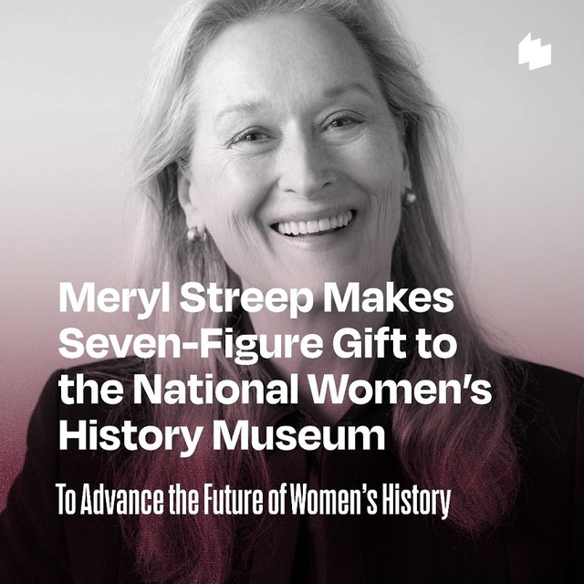 Muzeul Naţional de Istorie a Femeilor – o organizaţie non-profit care propune în principal expoziţii virtuale menite să „pună în lumină poveştile femeilor care ne-au modelat trecutul şi care continuă să ne influenţeze viitorul comun” – a anunţat că Meryl Streep a făcut o donaţie de şapte cifre instituţiei din Washington.