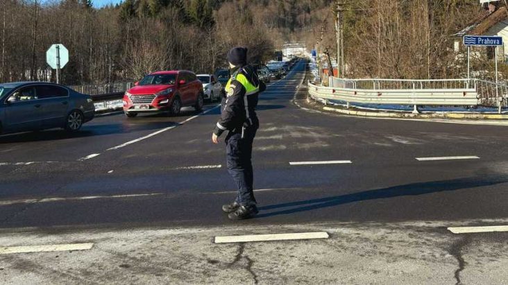 Pe DN1, în localitatea Predeal, la intersecţia DN1 cu DN 73A, poliţiştii dirijează circulaţia pentru a evita formarea de coloane.