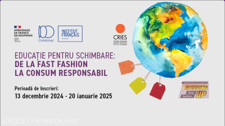 ”Ambasada Franţei în România, în parteneriat cu Centrul de Resurse pentru Iniţiative Etice şi Solidare (CRIES), lansează, astăzi, 13 decembrie, un apel de proiecte ca parte a evenimentului ‘Speeding Up Slow-Fashion’, organizat de Ambasada Franţei în aprilie 2025. Iniţiativa îşi propune să susţină proiecte axate pe educarea tinerilor şi creşterea gradului de conştientizare a acestora cu privire la consumul responsabil, impactul industriei textile asupra mediului, problemele asociate fenomenului fast fashion şi explorarea unor alternative viabile în domeniu”, se arată într-un comunicat transmis AGERPRES.