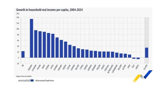 Cu un +134% dominăm topul Eurostat la creşterile reale (deflatate) ale veniturilor gospodăriilor între 2004 şi 2024, următorii fiind polonezii şi balticii cu câte +85% spre +95% în perioada analizată.