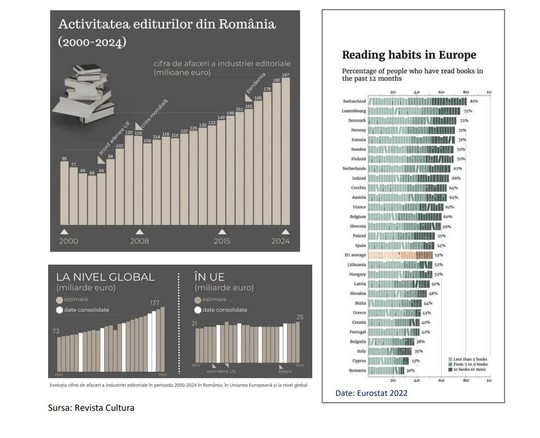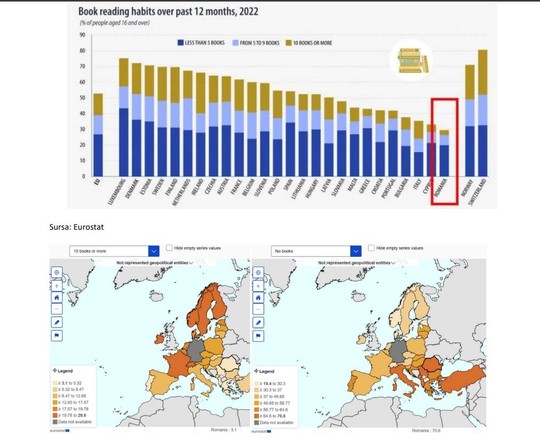 Cele mai recente date Eurostat ne arată că 70,6% din populaţie nu a citit cărţi deloc în ultimul an – ultimele 12 luni – recordul acesta negativ al României plasându-ne pe locul 2 pe continent după Albania – care nici măcar nu e membră U.E.