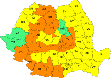 Administraţia Naţională de Meteorologie a emis, vineri dimineaţă, un cod portocaliu de instabilitate atmosferică accentuată, între orele 14.00 – 21.00, pentru judeţele Caraş-Severin, Hunedoara, Cluj, Mureş, Bistriţa-Năsăud, Maramureş, Covasna şi la munte.