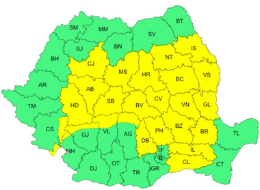 De asemenea, ANM a emis, luni, un cod galben de instabilitate atmosferică temporar accentuată, pentru ziua de luni, până la ora 23.00. Astfel, în acest interval vor fi perioade cu instabilitate atmosferică accentuată, cu averse torenţiale, frecvente descărcări electrice şi intensificări de scurtă durată ale vântului, cu rafale de 50…70 km/h la munte, în cea mai mare parte a Moldovei şi Transilvaniei, precum şi în nordul şi estul Munteniei.