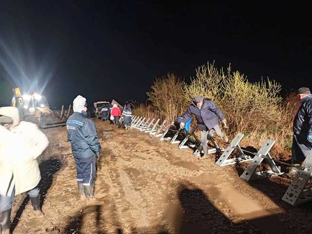 Luni dimineaţă, s-a suplimentat cu 200 de metri liniari aduşi de la ABA Prut-Bârlad pentru consolidarea şi prelungirea liniilor de apărare provizorii, care vor fi instalaţi dacă situaţia o va impune.