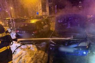 Intervenţie pentru stingerea unui incendiu care a afectat mai multe autoturisme pe strada Bucegi din municipiul Cluj-Napoca / Un bărbat a suferit arsuri – FOTO