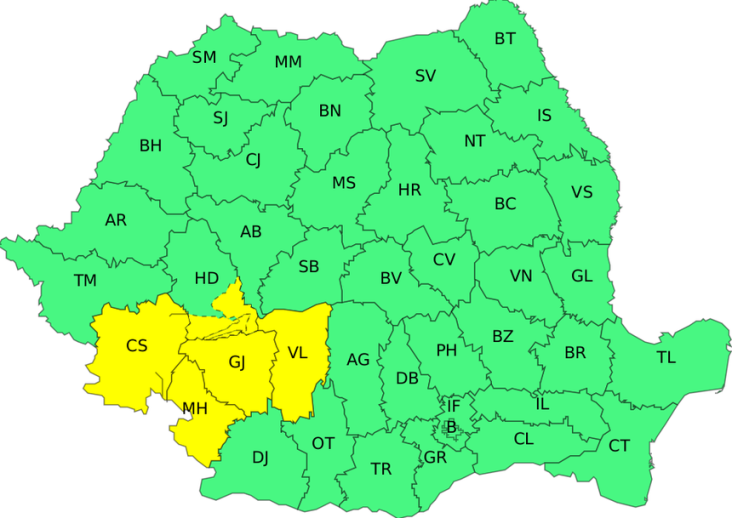 De asemenea, meteorologii au emis o atenţionare cod galben de cantităţi însemnate de apă, valabilă de miercuri până vineri la prânz. În sudul Banatului, în vestul şi nordul Olteniei şi în vestul Carpaţilor Meridionali, vor fi ploi cu caracter de aversă, iar mai ales prin acumulare cantităţile de apă vor fi de 40…60 l/mp.