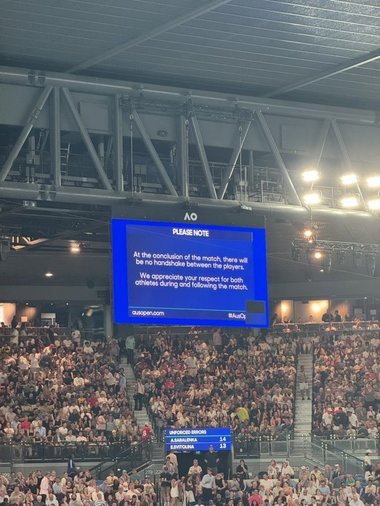 „La finalul meciului, jucătoarele nu îşi vor strânge mâinile. Vă rugăm să respectaţi ambele sportive în timpul şi după meci”, au putut citi spectatorii de la Rod Laver Arena.