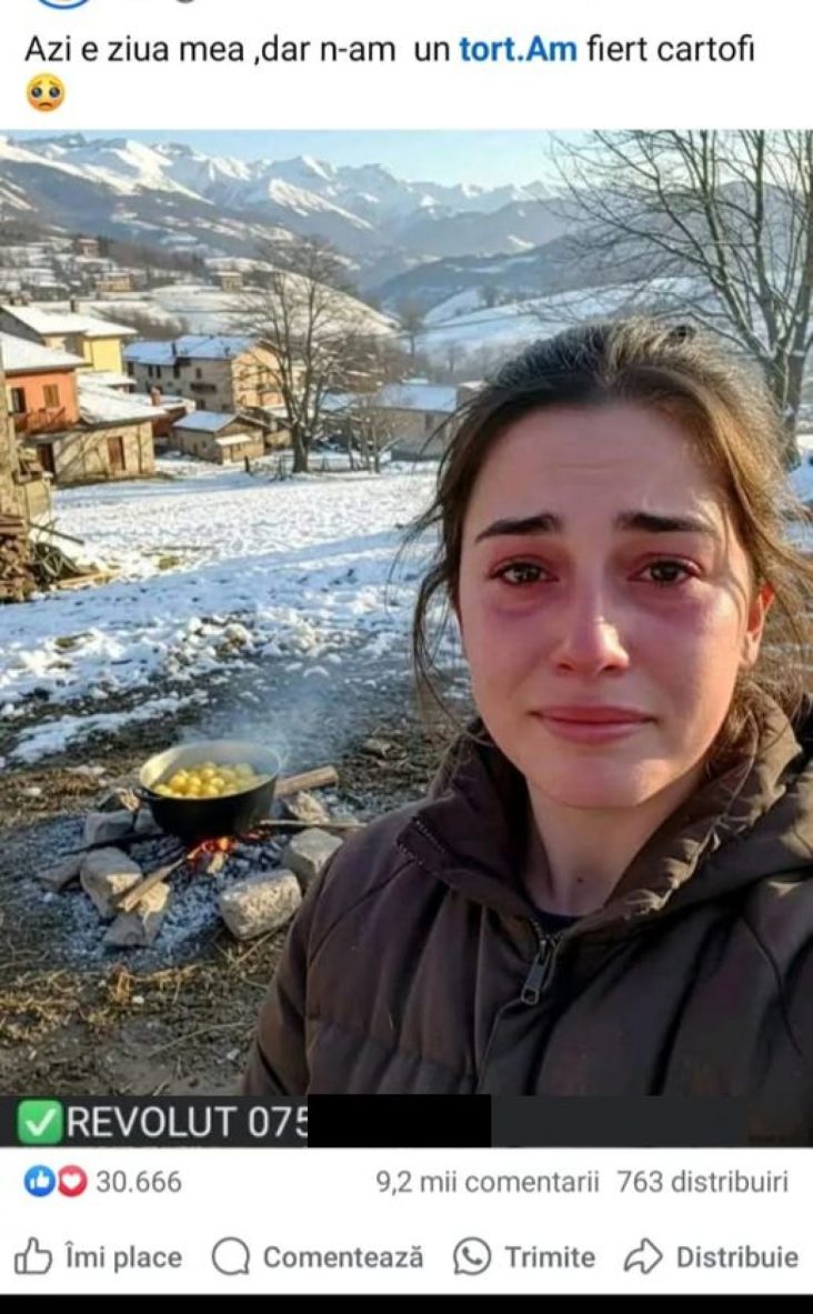 Timp de mai multe zile, echipa antena3.ro a monitorizat şi căutat pagini cu astfel de conţinut. Pentru un ochi cât de cât familiarizat cu virtualul, postările de pe aceste pagini – atât textul, cât şi fotografiile – sunt create cu inteligenţa artificială. Iar fiecare postare antrenează şi zeci de mii de reacţii în doar câteva ore de la publicare.