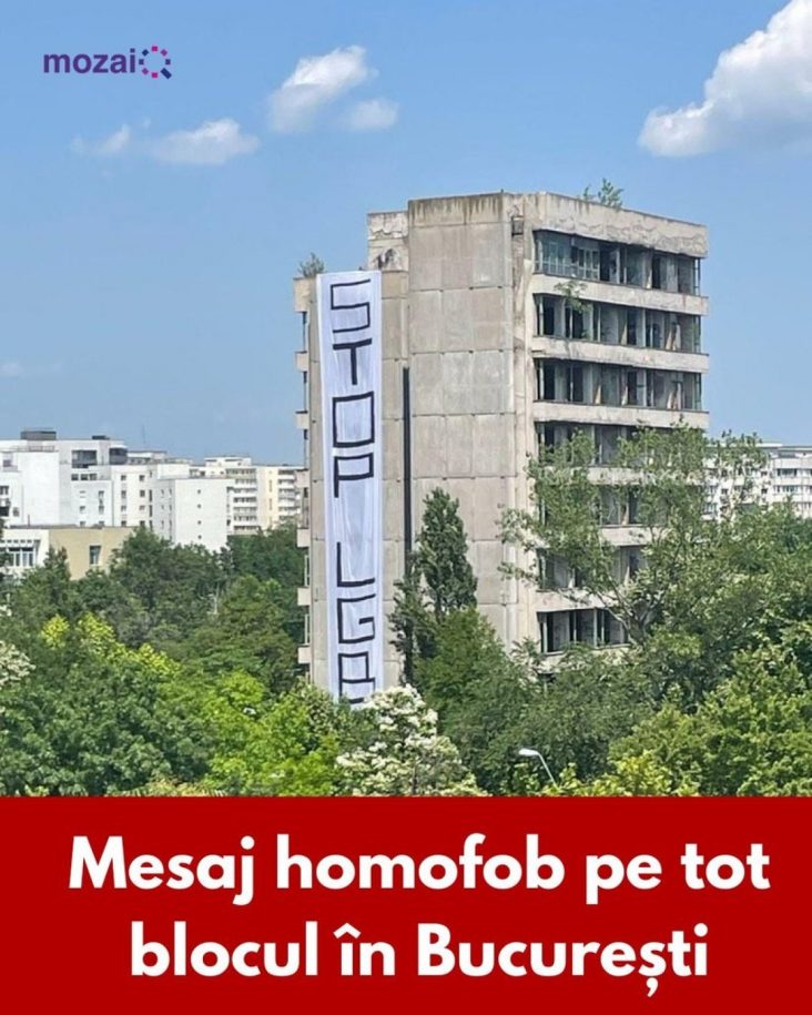 „De asemenea, întrucât clădirea pe care a fost inscripţionat mesajul împotriva unor persoane ce au o anumită orientare sexuală este abandonată, la adresă s-au prezentat şi echipaje din cadrul ISU-BIF, pentru a interveni, dacă situaţia o impune. Menţionăm faptul că bannerul în cauză a fost înlăturatâ”, a transmis Poliţia Capitalei.