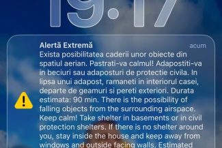 Nou mesaj RO-Alert în judeţul Tulcea, cu privire la posibilitatea căderii de obiecte din spaţiul aerian – FOTO