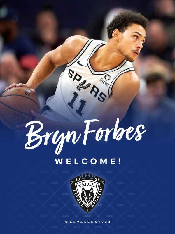 Echipa de baschet masculin CS Vâlcea 1924 a anunțat, luni, pe pagina sa de Facebook că l-a transferat pe jucătorul american Bryn Forbes, fost campion în NBA, care a venit de la Aris Salonic.
