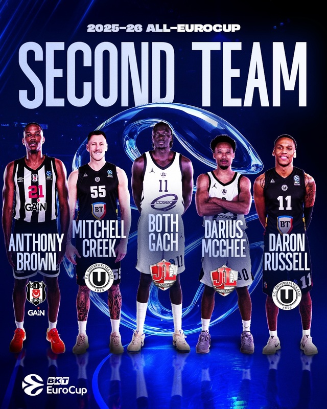 Din a doua echipă ideală a sezonului 2025-2026 din BKT EuroCup mai fac parte Anthony Brown (Beşiktaş), Both Gach şi Darius McGhee (ambii de la JL Bourg).