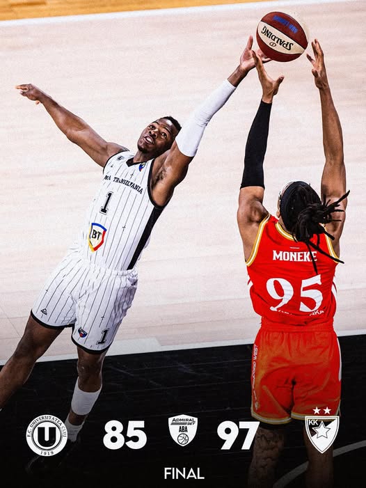 U-BT Cluj-Napoca a fost învinsă de echipa sârbă Steaua Roșie Belgrad, cu scorul de 97-85 (26-30, 15-16, 37-19, 19-20), duminică seara, în BTarena din Cluj-Napoca, la debutul în faza Top 8 a competiției de baschet masculin ABA League.