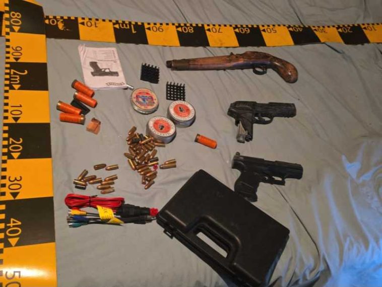 Potrivit acestora, armele au fost descoperite în urma unor percheziții care au avut loc în cursul dimineții de joi, după ce cu o zi înainte bărbatul în cauză ar fi amenințat cu arma un consătean.