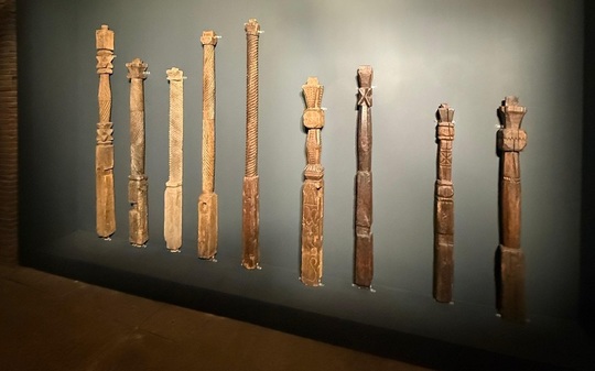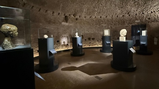 Lucrările lui Brâncuşi şi materialele etnografice din Oltenia natală se îmbină cu sculpturile clasice din colecţia permanentă a Mercati di Traiano. Astfel, sculpturile figurative clasice descoperite în Forumul Roman dialoghează cu motivele abstracte, geometrice, care decorează stâlpii de lemn proveniţi din casele olteneşti din secolul al XIX-lea, păstraţi la Muzeul din Târgu-Jiu, similare celor în care a copilărit Brâncuşi.