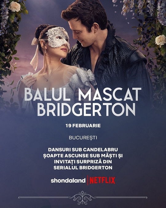 Netflix invită fanii la “Balul Mascat Bridgerton”, în 19 februarie, o celebrare de o singură seară a lumii “Bridgerton” şi a celui de-al patrulea sezon din serialul-fenomen. Oaspeţii vor fi transportaţi într-o experienţă imersivă inspirată de epoca Regenţei.