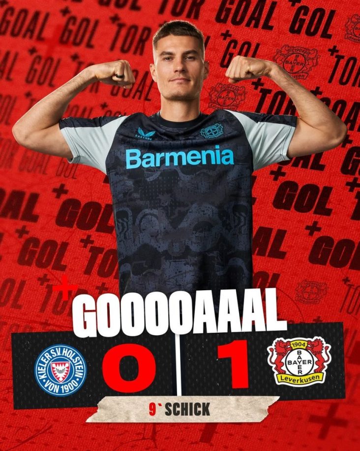 Campioana a controlat meciul de la Kiel şi a deschis scorul în minutul 9, când Patrik Schick l-a învins pe portarul Weiner. Amine Adli a majorat avantajul echipei lui Xabi Alonso, în minutul 44, şi Bayer s-a impus cu 2-0, consolidându-şi poziţia secundă în clasament. Bayern conduce cu 55 de puncte, Leverkusen e pe doi, cu 50 de puncte, iar ultima treaptă a podiumului este ocupată de Eintracht Frankfurt, cu 42 de puncte, dar cu un meci în minus.