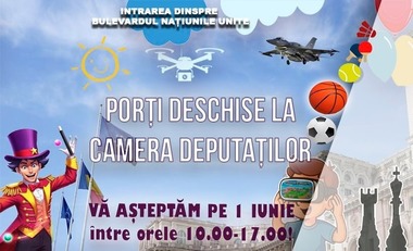 Camera Deputaţilor îşi deschide porţile duminică, 1 iunie, cu ocazia Zilei Copilului, spectacole de teatru şi de magie, prezentare de maşini, două elicoptere, drone, simulatoare de zbor şi căşti VR, ”Orăşelul circulaţiei rutiere”, tobogane gonflabile, aflându-se printre activităţile din cadrul evenimentului.