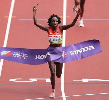 Jepchirchir, în vârstă de 31 de ani, a câştigat medalia de aur la maratonul olimpic de la Jocurile Olimpice din 2021, o cursă disputată la Sapporo. Ea a câştigat, de asemenea, maratoanele de la New York şi Londra.