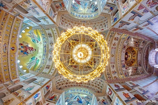 • Icoana Maicii Domnului Platytera, din absida altarului, cu o înălţime de 16 metri, este cea mai mare reprezentare a Maicii Domnului în mozaic din România şi una dintre cele mai mari din lumea ortodoxă.