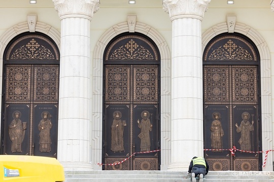 Intrarea în Catedrala Naţională se face prin 27 de uşi de bronz pe care sunt reprezentaţi Mântuitorul Iisus Hristos, Maica Domnului, Sfinţii Apostoli, dar şi sfinţi români.
