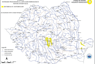 Risc de viituri în judeţele Argeş, Dâmboviţa şi Tulcea, până miercuri