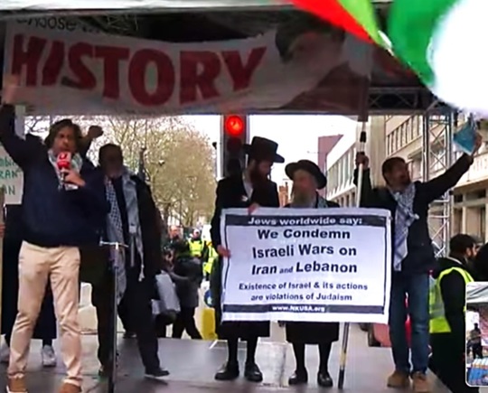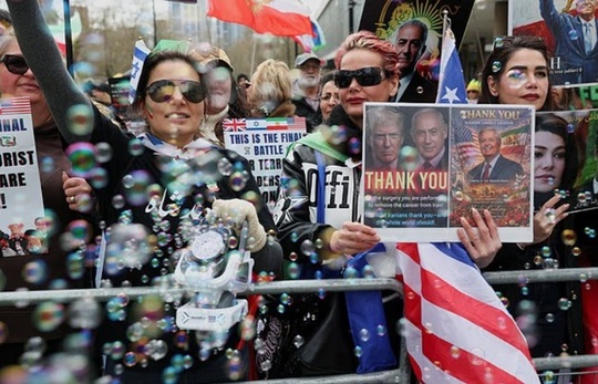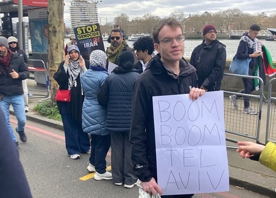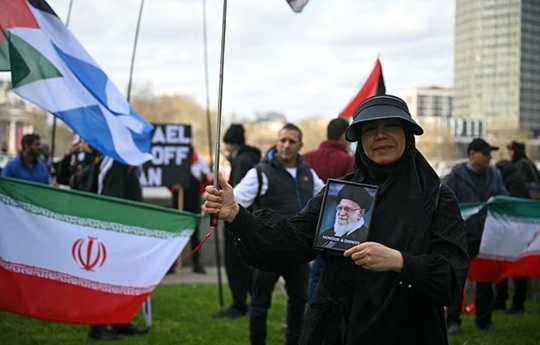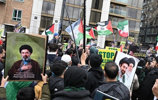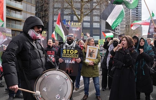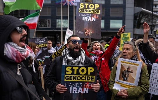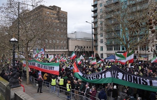 La Londra, manifrastanţi au agitat pancarte cu mesaje ca ”Stop crimelor de război iraniene” sau ”Eliberaţi Palestina”.