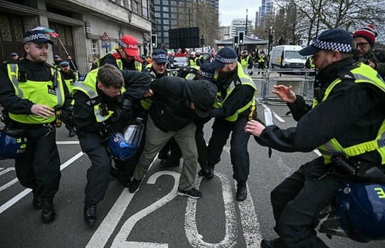 Douăsprezece persoane au fost arestate la o manifestaţie propalestiniană în weekend, în centrul Londrei, a anunţat poliţia, care anchetează cu privire la declaraţii ale unui vorbitor, membru al unei trupe de rap, potrivit agenţiei britanice de presă Press Association (PA), relatează AFP.
