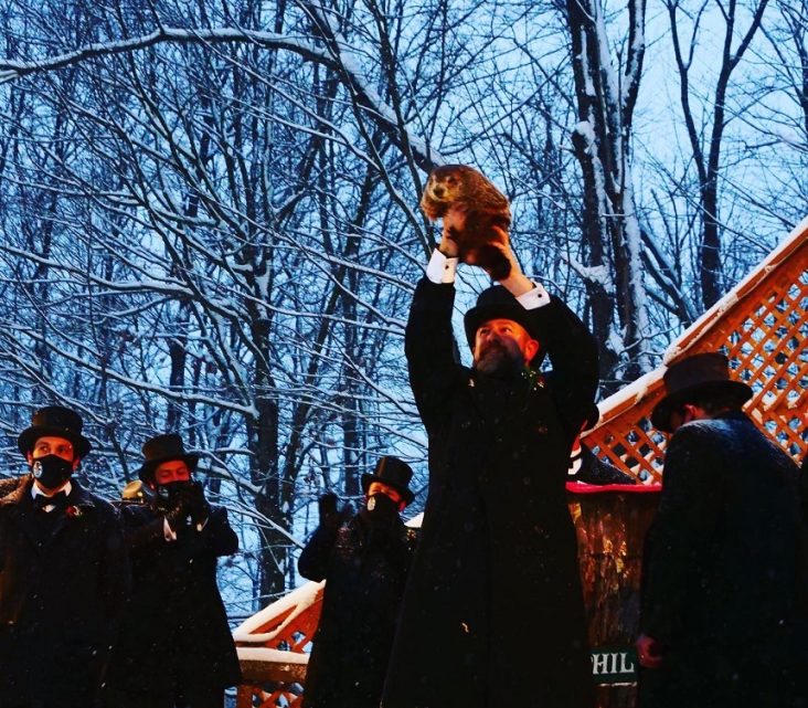 Punxsutawney Phil sees his shadow and predicts six more weeks of winter!