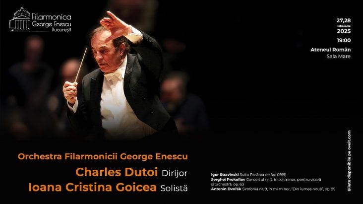 Muzicianul Charles Dutoit va dirija orchestra Filarmonicii “George Enescu”, în 27 şi 28 februarie, cu violonista Ioana Cristina Goicea, artist în rezidenţă în Stagiunea 24/25 , în calitate de solistă a Concertului nr. 2, în sol minor, pentru vioară şi orchestră, op. 63, de Serghei Prokofiev.