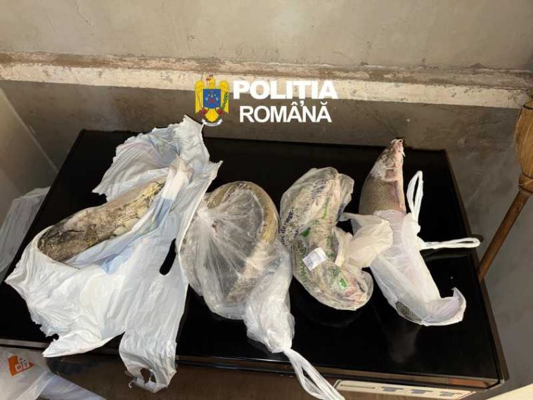 ‘Cu ocazia perchezițiilor, la locuințele persoanelor bănuite au fost găsite peste 350 de ancore cu ghiară triplă, 8 setci, 6 pripoane, o barcă pneumatică cu motor, o armă cu aer comprimat supusă autorizării, 11 cartușe nepercutate calibrul 16 mm și pese 10 kilograme de pește, din specia somn și șalău, toate fiind ridicate în vederea continuării cercetărilor’, a transmis IPJ Arad.