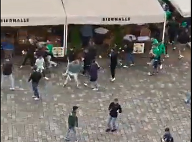 Imaginile postate pe reţelele de socializare au arătat fanii în centrul oraşului aruncând cu scaune unii în alţii şi participând la bătăi în masă marţi seara.