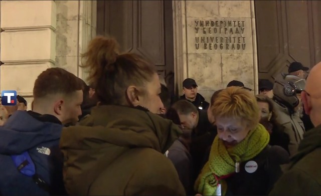 Rectorul universităţii, Vladan Djokic, le-a spus ulterior mulţimii de protestatari că poliţia a intrat în clădire fără o explicaţie legală valabilă, în căutarea unor documente, şi a confiscat computere.
