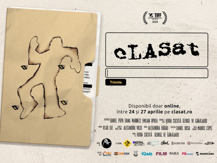 “Clasat”, lungmetrajul scris şi regizat de Horia Cucută şi George ve Gänæaard, desemnat la TIFF 2024 drept „Cel mai bun film românesc” din secţiunea „Zilele Filmului Românesc”, va fi accesibil online doar în perioada 24-27 aprilie, pe site-ul clasat.ro. Achiziţionarea accesului online se poate face de pe tot teritoriul României şi din străinătate. Utilizatorii sunt invitaţi să participe la premiera online din perioada menţionată şi să achiziţioneze din timp o vizionare de pe un device favorit, la alegere.