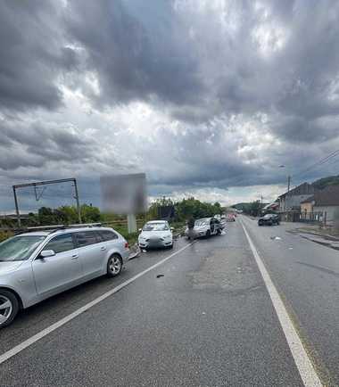 Accidentul, în care au fost implicate patru autovehicule, s-a produs, duminică, pe strada 1 Mai din municipiul Dej.