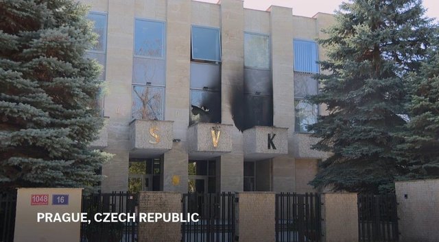 Several Molotov cocktails were thrown at the Russian House in Prague