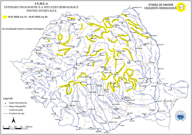 Atenţionarea vizează anumite sectoare de râuri din judeţele: Maramureş, Satu Mare, Bistriţa-Năsăud, Bihor, Cluj, Sălaj, Alba, Harghita, Mureş, Sibiu, Braşov, Hunedoara, Gorj, Covasna, Vâlcea, Dâmboviţa, Prahova, Ilfov, Buzău, Suceava, Neamţ, Bacău, Vrancea, Botoşani şi Iaşi.