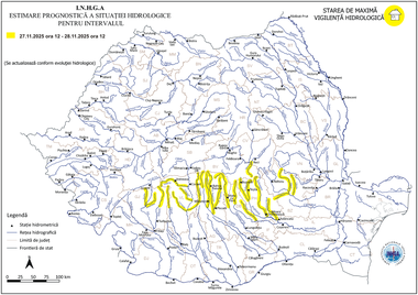 Institutul Naţional de Hidrologie şi Gospodărire a Apelor (INHGA) a anunţat că, având în vedere situaţia hidrometeorologică actuală şi prognoza meteorologică pentru următoarele 24 de ore, a instituit Codul galben de inundaţii de joi, de la ora 12.00, până vineri, la aceeaşi oră.