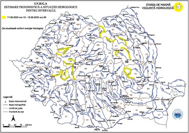 Potrivit sursei citate, în intervalul 17 iunie, ora 12:00 – 18 iunie, ora 09:00, se pot produce scurgeri importante pe versanţi, torenţi şi pâraie, viituri rapide pe râurile mici, precum şi creşteri de debite şi niveluri, cu posibile depăşiri ale cotelor de atenţie.