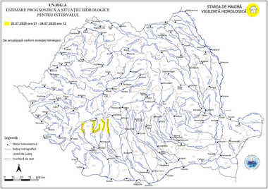 ”Atenţionarea a fost emisă ca urmare a condiţiilor hidrometeorologice actuale şi a prognozei meteorologice pentru următoarele 24 de ore, care indică posibilitatea apariţiei unor fenomene hidrologice periculoase pe fondul precipitaţiilor prognozate. Astfel, se pot produce scurgeri importante pe versanţi, torenţi şi pâraie, viituri rapide pe râurile mici, cu posibile efecte de inundaţii locale şi creşteri de debite şi niveluri, existând probabilitatea depăşirii cotelor de atenţie. Menţionăm că fenomenele periculoase se pot manifesta cu probabilitate şi intensitate mai mare în dimineaţa zilei de 24 iulie, în intervalul orar 06:00 – 10:00”, au arătat hidrologii.