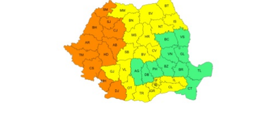 Meteorologiii au emis o avertizare cod portocaliu de caniculă, pentru zilele de sâmbătă şi duminică, între orele 12.00 – 21.00, pentru judeţe din Banat, Crişana, în sud-vestul Olteniei şi în vestul Transilvaniei. Se aşteaptă temperaturi de 37 de grade Celsius.