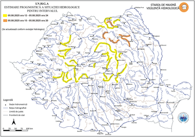 Institutul Naţional de Hidrologie şi Gospodărire a Apelor a actualizat avertizarea hidrologică, având în vedere situaţia hidrometeorologică actuală şi prognoza meteorologică pentru următoarele 24 de ore.