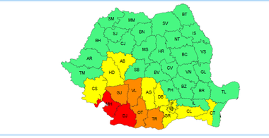 Cod roşu de caniculă în judeţele Mehedinţi şi Dolj, unde temperaturile ajung la 41 de grade / Cod portocaliu în Olt, Teleorman, Gorj şi Vâlcea / Vânt în mai multe judeţe ale ţării