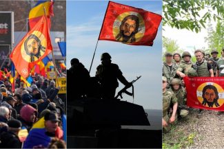 Steagul de luptă al rușilor în Ucraina a apărut la mitingul AUR de duminică. Ce reprezintă drapelul controversat